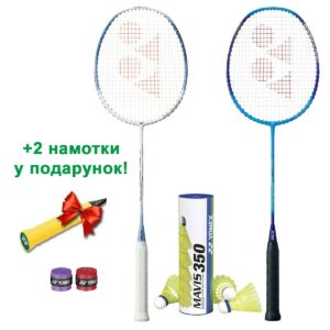 До складу набору для бадмінтону Yonex Family входять: 2 “дорослі” фірмові ракетки Yonex Muscle Power 2, одна дитяча ракетка Yonex Muscle Power 2 Junior, 6 пластикових воланчиків Yonex Mavis 350, 12 фірмових пір’яних воланів та додатково 3 намотки Yonex у подарунок!