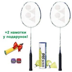 До набору Yonex Power входять 2 міцні бадмінтонні ракетки Yonex Muscle Power 2, 6 японських пластикових воланчиків Yonex Mavis 350 та 2 обмотки Yonex у подарунок!