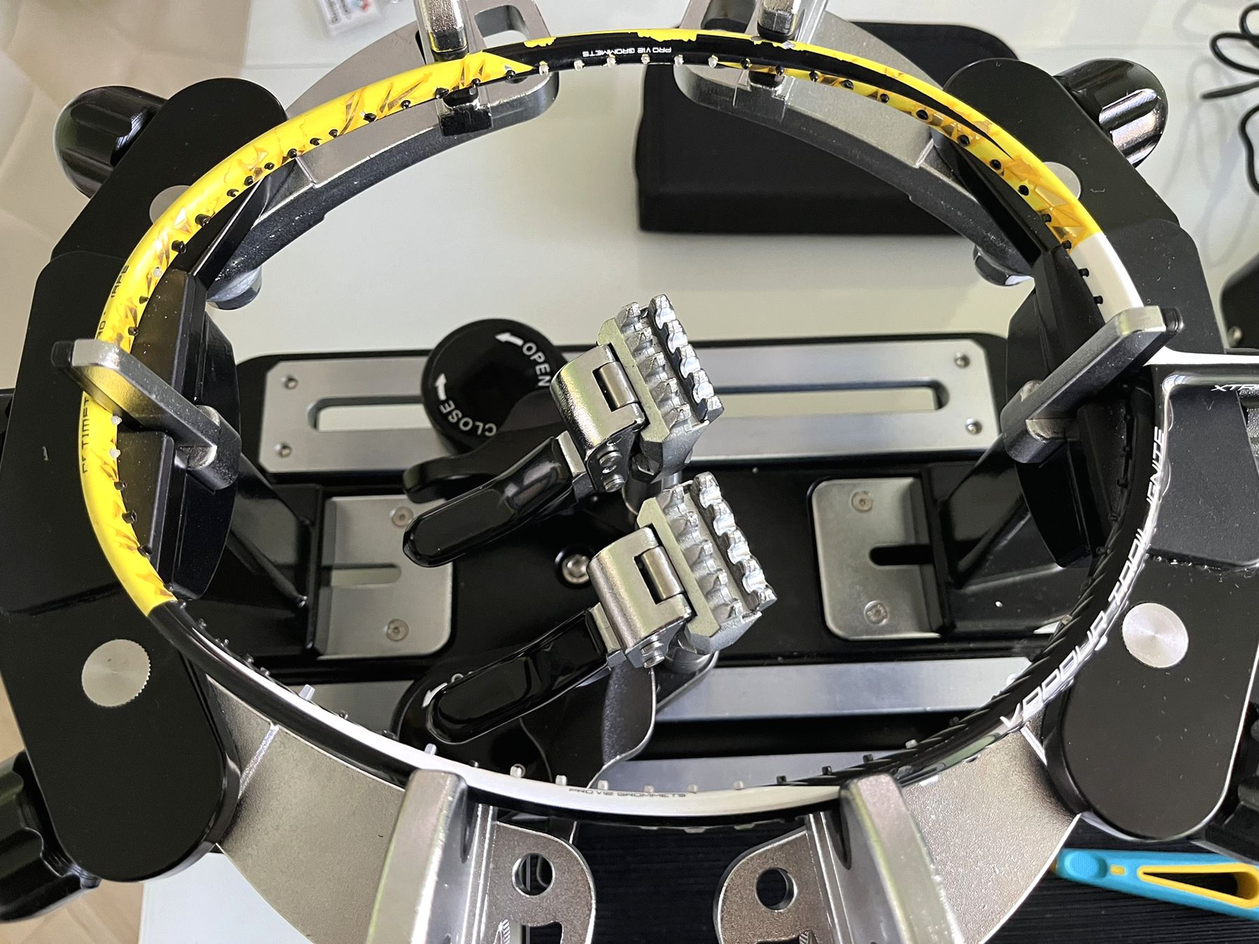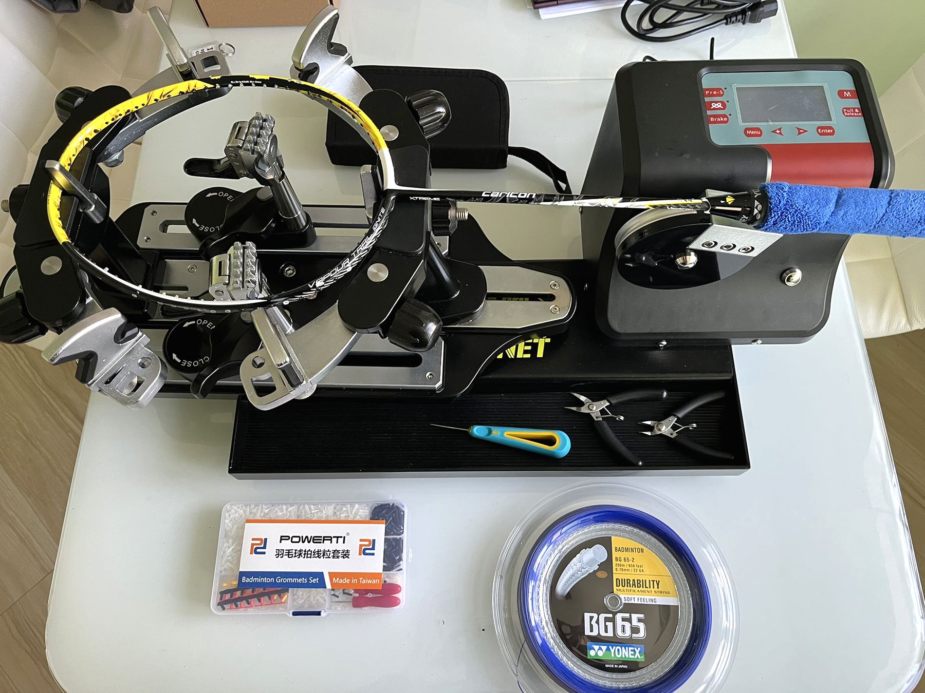 Натяжка струн на ракетку для бадмінтону відбувається на якісному електронному станку. Завдяки міцним фіксаторам та вивіреному калібруванню, натяг вашої струни буде точно відповідати замовленому.